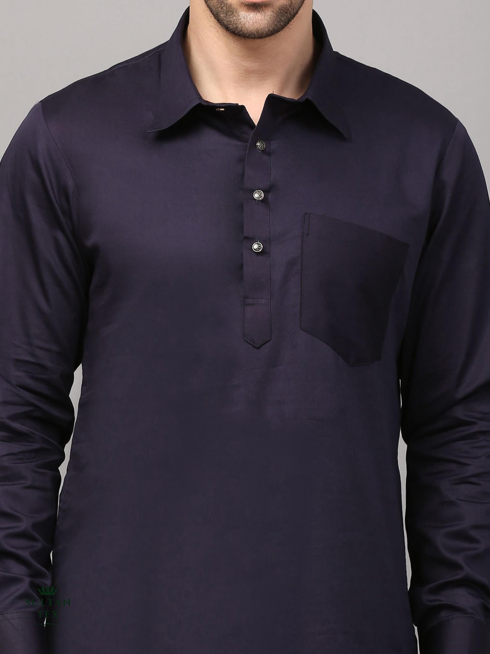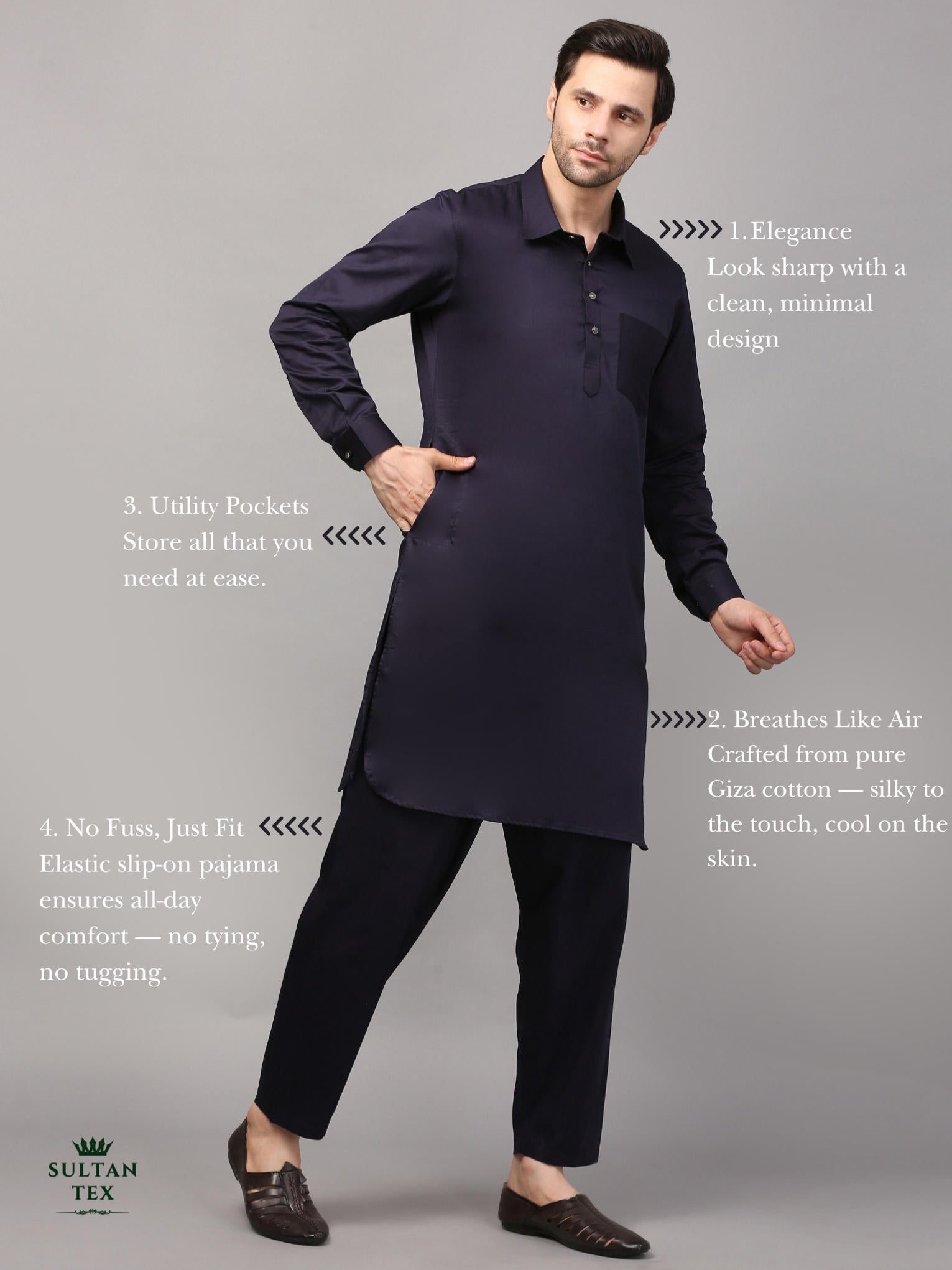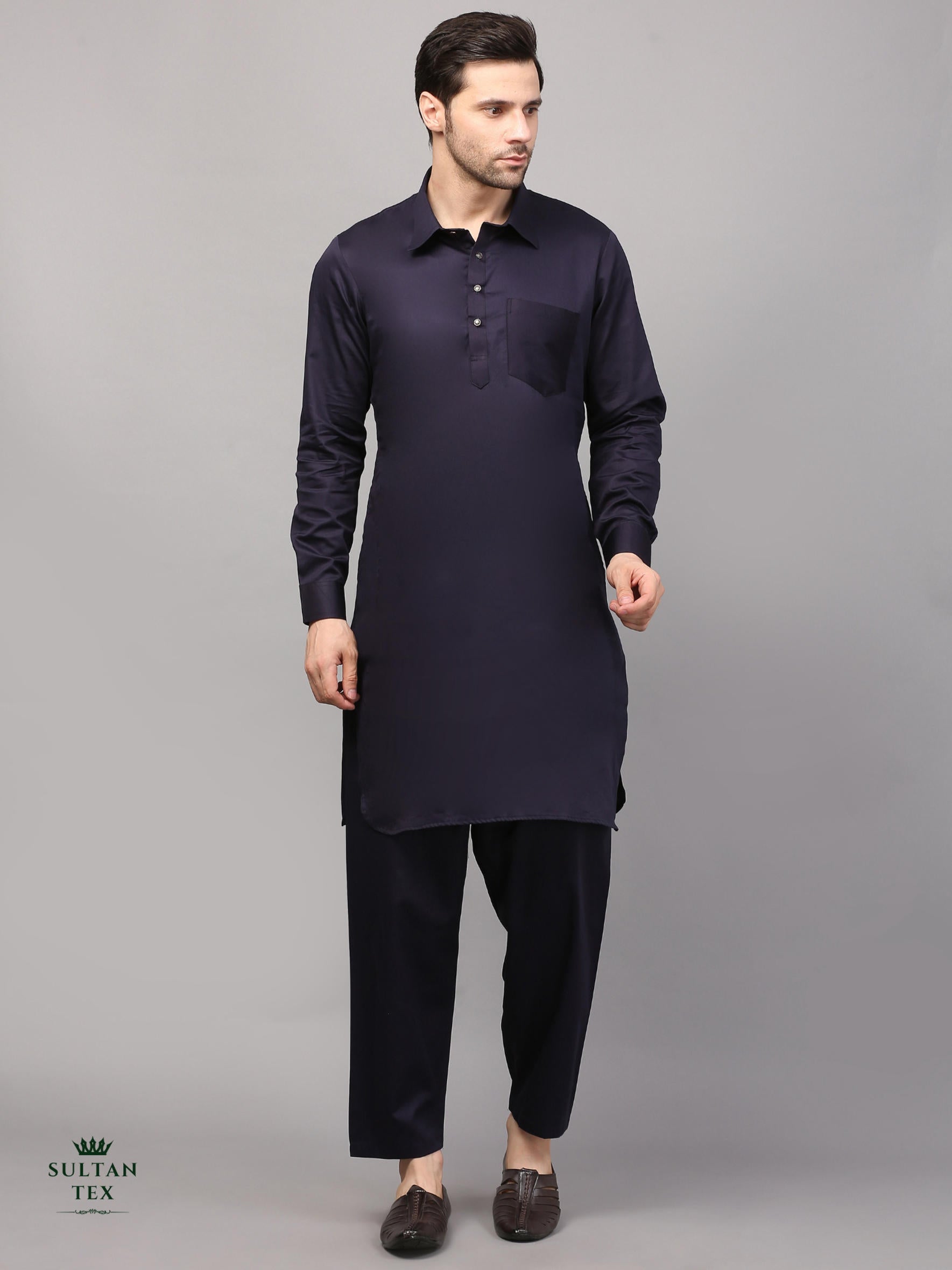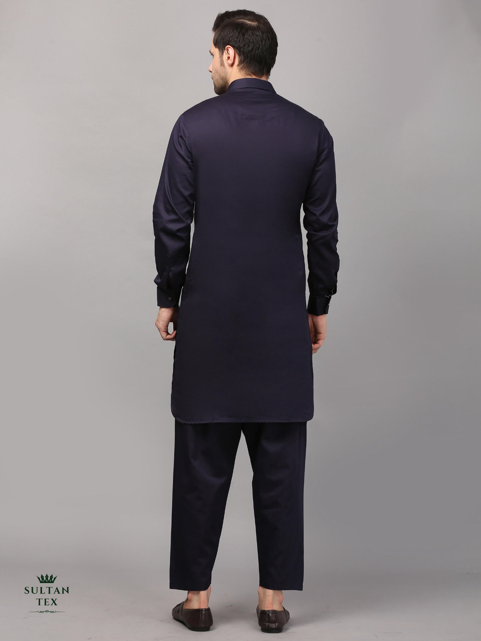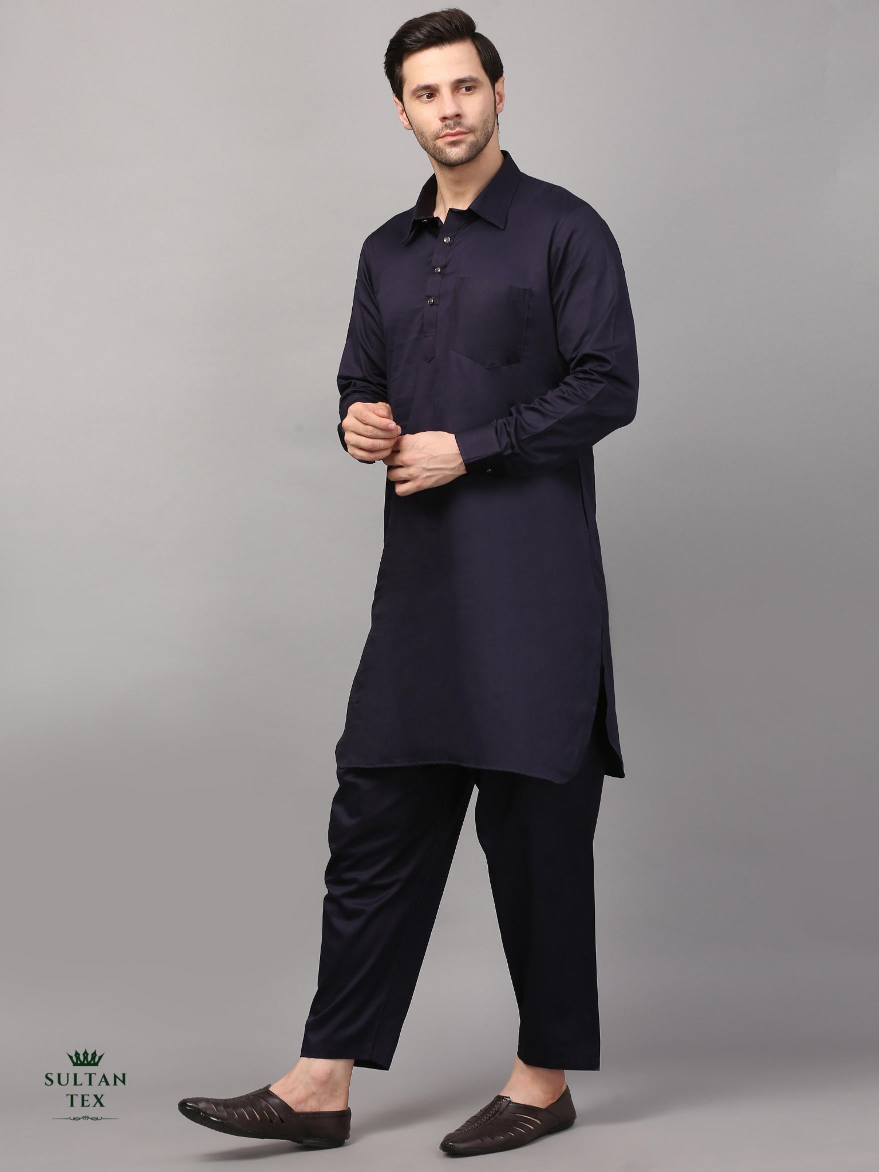 Modern Pathani Kurta Pajama Set - Dark Navy - SU-PTH-001